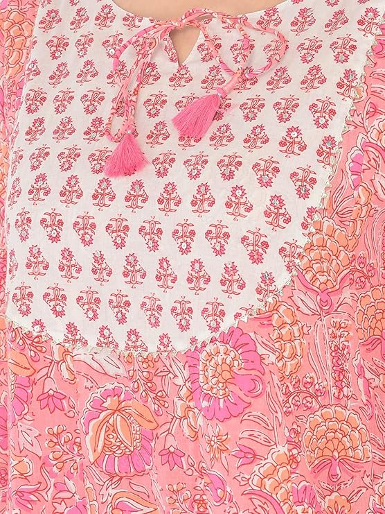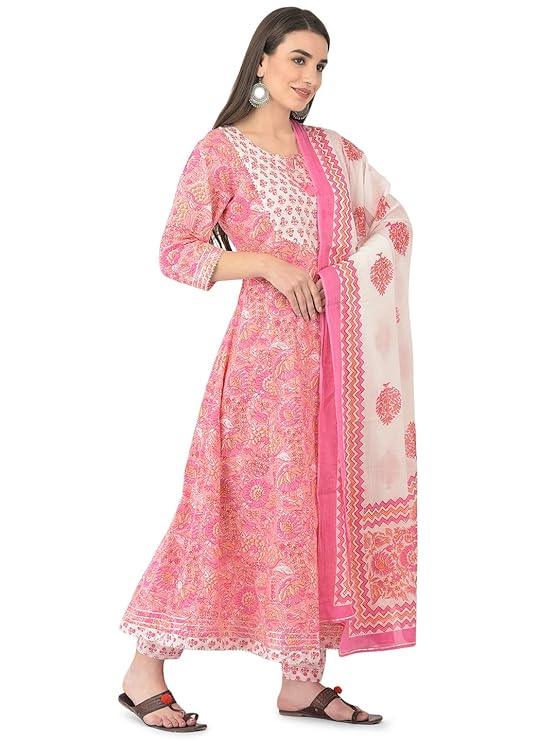 - FEATURES & EXCELLENT FITTING :- KURTA :: Sleeves :-: 3/4th Sleeve, Pattern : Anarkali , Round Neck, Style : Floral Print, Gota Lace Work on Yoke,Sleeve, Dupatta Also Attach With Gota Lace With Pant Waist Size : (Fit 28 inch To 50 Inch Waist),Pant :- Style :: Print , Length : 36 Inches , Closer Type :: Palazzo with elasticated drawstring waist Dupatta : 2.5 Mtr